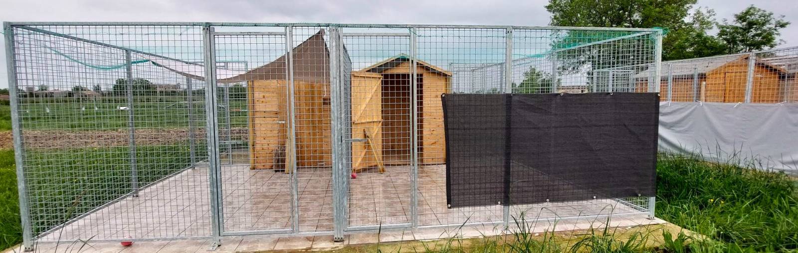 Votre chien sera dans un parc extérieur, qui fait 9m2 avec une jolie cabane. Nous avons mis des paravents sur les bords pour les protéger du vent mais aussi pour ne pas voir le deuxième duo à côté et comme ça cela évite les aboiements. Le sol est un carrelage pour sol extérieur c'est beaucoup plus propre, ça ne glisse pas et c'est plus pratique pour le nettoyage. Pour l'été nous rajoutons des voiles d'ombrages en hauteur ainsi que des bac à sable pour que votre chien puisse se rafraichir quand il le souhaite.